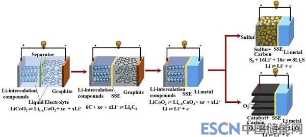 圖二、使用固體電解質(zhì)到基于鋰金屬負(fù)極的ASSLMBs、ASSLSBs和ASSLABs等先進(jìn)電池的鋰電池從常規(guī)LIBs到ASSLIBs的發(fā)展趨勢(shì)示意圖
