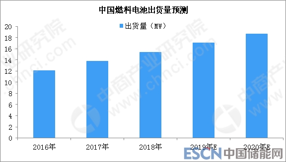 據(jù)統(tǒng)計(jì)數(shù)據(jù)顯示,2015年我國燃料電池出貨量約10.5MW,同比增長14.1%,出貨量首次超10MW。未來,燃料電池市場將持續(xù)增長,預(yù)計(jì)到2019年出貨量將超17MW。