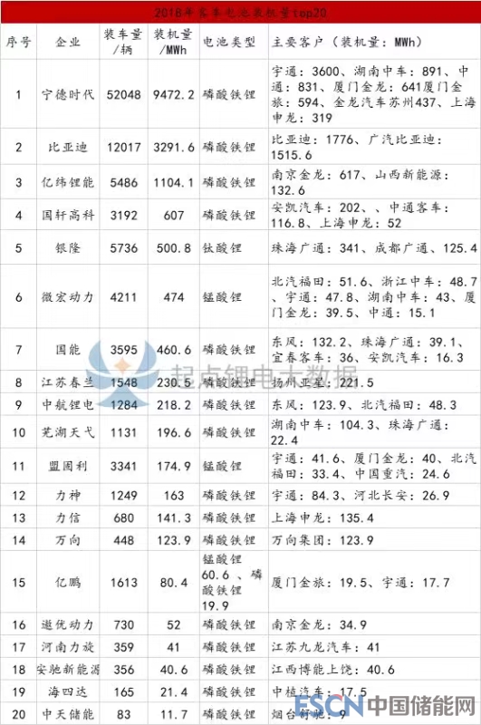 而2017年排名前20的企業(yè)分別是寧德時(shí)代、比亞迪、沃特瑪、國(guó)軒高科、北京國(guó)能、銀隆、力神、微宏、盟固利、中航鋰電、億緯鋰能、蕪湖天弋、中天儲(chǔ)能、海四達(dá)、江蘇春蘭、鵬輝能源、億鵬、萬(wàn)向、東莞邁科和上海航天電源。