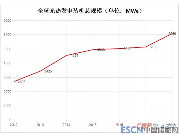 ▲ 2012-2018年全球光熱發(fā)電建成總裝機量