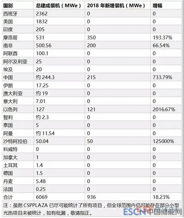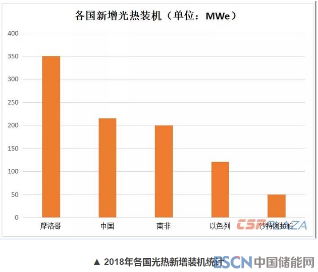 2018年,全球光熱發(fā)電裝機容量增幅較大,主要得益于摩洛哥、中國、南非、以色列及沙特等新興光熱發(fā)電市場多座大型商業(yè)化光熱電站的建成投運。