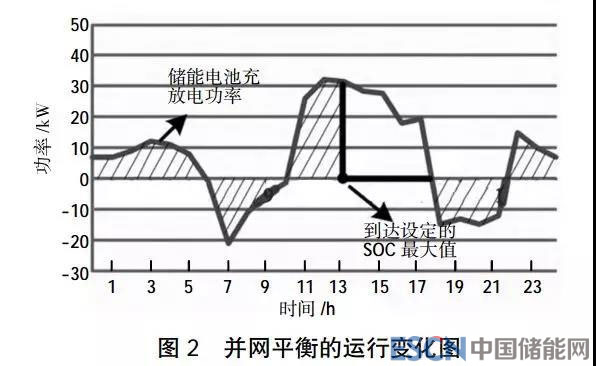 在采取并網(wǎng)功率平衡處理的時(shí)候,該儲(chǔ)能電池的實(shí)際運(yùn)行情況如圖2所示。
