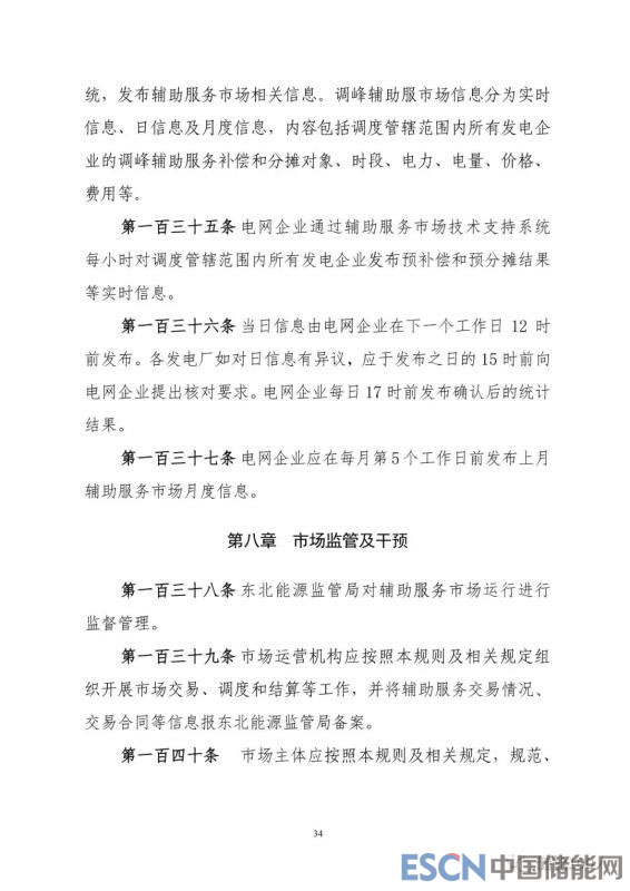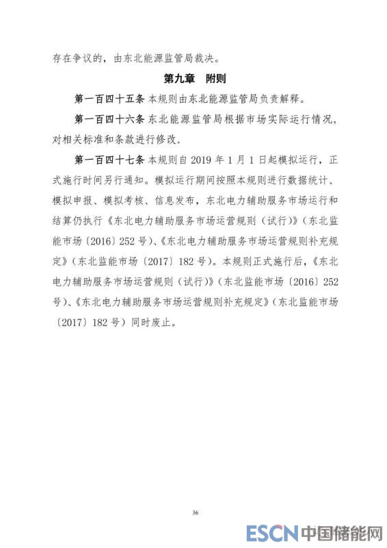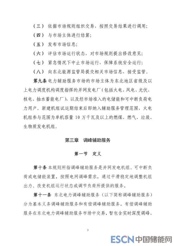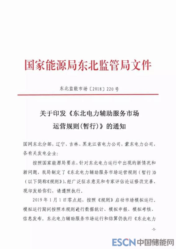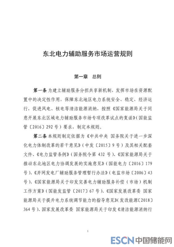 以下為《東北電力輔助服務(wù)市場運(yùn)營規(guī)則(暫行)》文件全文: