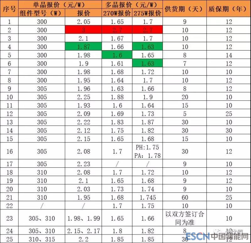 本次招標(biāo)中,去除每標(biāo)段最高報價和最低報價,多晶270W組件平均報價約為1.7元/W,多晶275W組件平均報價約為1.74元/W,單晶300-310W組件平均報價約為2.07元/W。