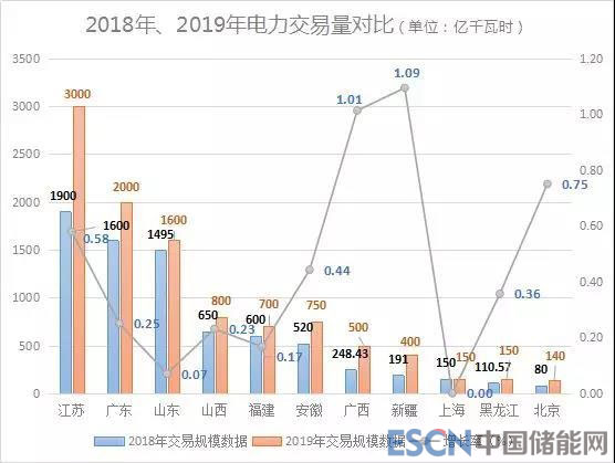 2019年的交易規(guī)模也在近期陸續(xù)公布于眾,截至目前,全國已經(jīng)有十多個省市公布了2019年電力交易規(guī)模,較2018年各省市電力交易規(guī)模有了大幅提升。