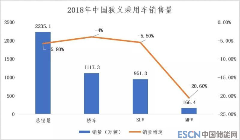 來自乘用車市場(chǎng)信息聯(lián)席會(huì)發(fā)布的數(shù)據(jù)顯示,2018年狹義乘用車(轎車、SUV、MPV)銷量為2235.05萬輛,較上年同期減少5.8%,其中轎車銷量下滑4%、MPV下滑20.6%、SUV下滑3.1%,為1990年代以來首次年度下滑。