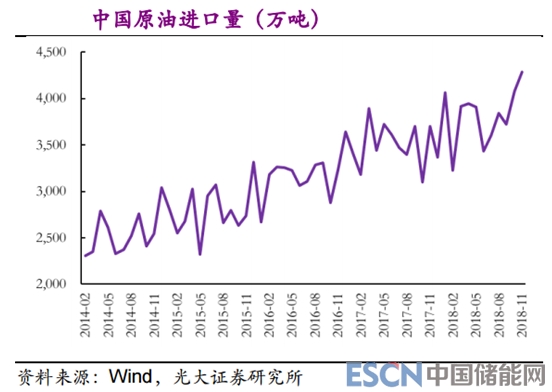 如上圖所示,目前我國(guó)的原油進(jìn)口量逐年升高,對(duì)外依賴度特別強(qiáng),到2018年11月我國(guó)原油的進(jìn)口量超4000萬(wàn)噸,而交通運(yùn)輸對(duì)于原油的消耗占比一直在50%以上,假設(shè)新能源車普及,其中好處不言自明。