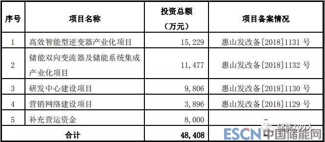 2018年末報(bào)送的招股說(shuō)明書中,在募資用途中,上能電氣重點(diǎn)增加了儲(chǔ)能項(xiàng)目。
