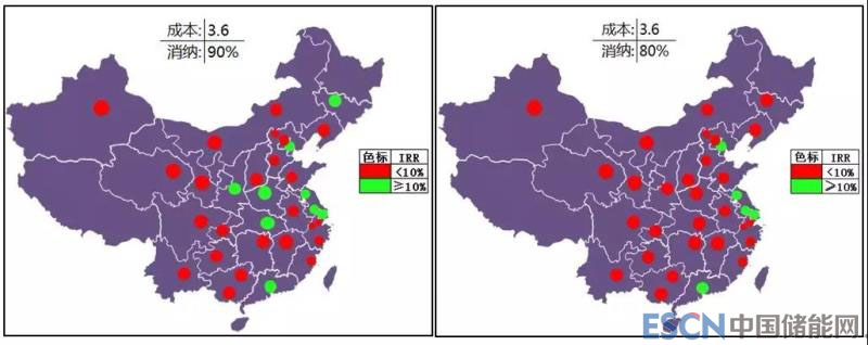 80%自用比例下有12個(gè)的城市(地區(qū))滿足收益率要求:蒙西、蒙東、冀北、鄭州、濟(jì)寧、長(zhǎng)春、連云港、蘇州、上海、深圳。