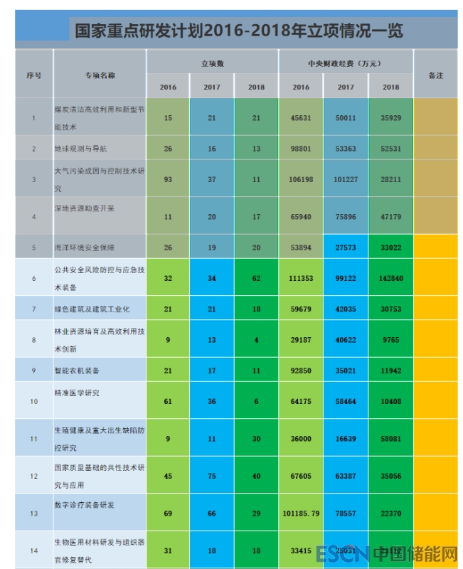 據動源君初步統(tǒng)計,截至目前,國務院批準實施的國家重點研發(fā)計劃重點專項為68個(財政部數據),自2016年起已啟動實施65個(國際合作專項除外)。其中,“十三五”大部分任務完成部署實施,立項項目達3500多項,中央財政經費投入超過760億元,數萬家單位參與,項目牽頭申報單位基本覆蓋全國所有的省、直轄市和自治區(qū)。動源君以國科管系統(tǒng)公示的數據為統(tǒng)計基礎,梳理發(fā)現,2016年啟動專項42個,項目數1193個,經費數2977176萬元(不含部分定向擇優(yōu)的經費);2017年新啟動6個重點專項,包括變革性技術關鍵科學問題、食品安全關鍵技術研發(fā)、中醫(yī)藥現代化、重大自然災害監(jiān)測預警與防范、智能機器人、現代服務業(yè)共性關鍵技術研發(fā)及應用,項目數1279個,經費數2553676萬元;2018年新啟動17個專項,包括場地污染成因與治理技術、主動健康和老齡化科技應對、科技冬奧等,經費數2018941萬元。下一步動源君還將以省份、單位類型分布、地域分布、項目類型等進行分類分析,僅各位銳粉參考。需要強調的是,以上分析只代表銳動源編輯部觀點,不代表官方口徑,如數據出現問題,歡迎指出。