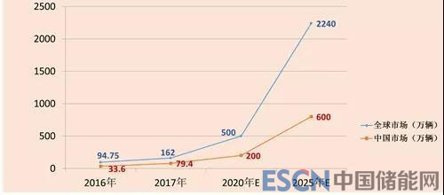 金力股份:主要的市場判斷來自新能源汽車市場在持續(xù)擴(kuò)大(如下圖),預(yù)計(jì)到2025年全球新能源車年產(chǎn)銷量可達(dá)2240萬輛,滲透率達(dá)25%,隔離膜年用量440億平米。再加上3C消費(fèi)電子類及儲(chǔ)能電池,應(yīng)用市場巨大。