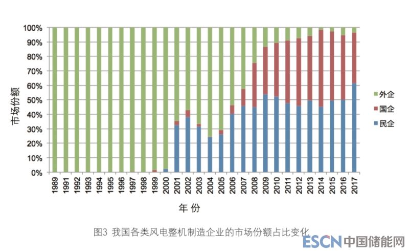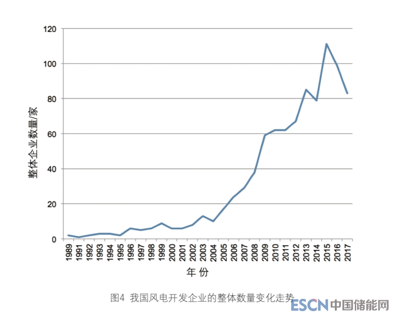 從各類整機制造企業(yè)的數(shù)量變化來看,眾所周知,由于國內(nèi)企業(yè)尚未 掌握相關(guān)技術(shù),我國風電開發(fā)早期采 用的是利用國外政府贈款、引進國外 設(shè)備的模式。因此,在較長一段時期 內(nèi),國內(nèi)市場一直為外資企業(yè)把控, 數(shù)量從最初的2家增加到1997年的8家。此后,這類企業(yè)的數(shù)量存在波動,2009年之后則持續(xù)減少,2012年以 來僅有GE、西門子-歌美颯、Vestas三家企業(yè)維持在華業(yè)務(wù)。此前有觀點 將外資企業(yè)的撤離歸咎于政府相關(guān)部 門設(shè)定的設(shè)備國產(chǎn)化率要求,但實際 上早在2009年,國家發(fā)展改革委就印 發(fā)了《關(guān)于取消風電工程項目采購設(shè) 備國產(chǎn)化率要求的通知》(發(fā)改能源〔2009〕2991號)。仔細分析可知,除 了價格因素外,導致上述局面的一個 最主要原因是,外資企業(yè)缺乏戰(zhàn)略調(diào) 整的靈活性,未能及時根據(jù)中國市場 的特點推出更加多元化的產(chǎn)品和服務(wù)。
