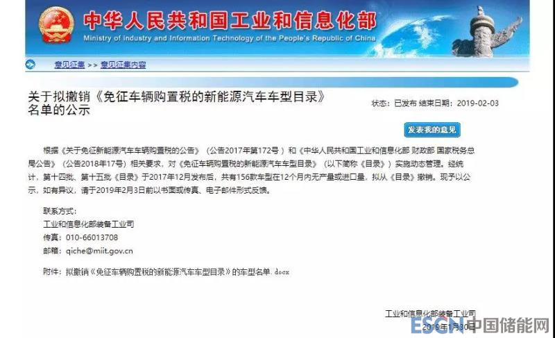 中國儲能網(wǎng)訊:1月30日消息,工信部今日發(fā)布關(guān)于擬撤銷《免征車輛購置稅的新能源汽車車型目錄》名單的公示。工信部稱,根據(jù)《關(guān)于免征新能源汽車車輛購置稅的公告》(公告2017年第172號 )和《中華人民共和國工業(yè)和信息化部 財政部 國家稅務(wù)總局公告》(公告2018年17號)相關(guān)要求,對《免征車輛購置稅的新能源汽車車型目錄》(以下簡稱《目錄》)實施動態(tài)管理。