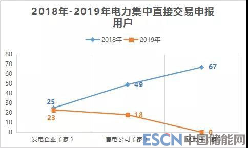 2019與2018年的電力集中直接交易中發(fā)電企業(yè)變化較小,一級(jí)用戶消失,售電公司和用戶申報(bào)數(shù)量對(duì)比如下: