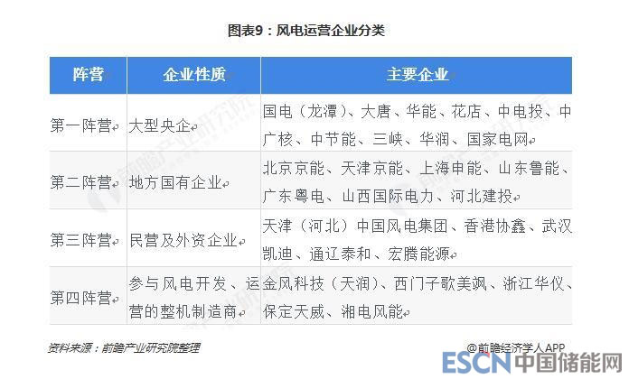 在風(fēng)電運營領(lǐng)域,根據(jù)企業(yè)性質(zhì),中國風(fēng)電開發(fā)、運營企業(yè)可以大致分為四類:大型央企、地方國有企業(yè)、民營及外資企業(yè)、參與風(fēng)電場開發(fā)的整機制造商。