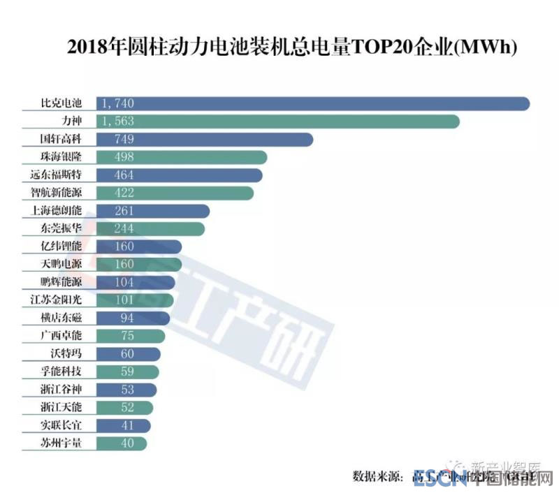 在2018年整個(gè)圓柱動(dòng)力電池裝機(jī)量中,三元圓柱5.0GWh,占比66.9%;鈦酸鋰圓柱0.5GWh,占比11.5%;磷酸鐵鋰圓柱0.42GWh,占比6.3%;其它電池類型圓柱合計(jì)1.19GWh,占比15.3%。