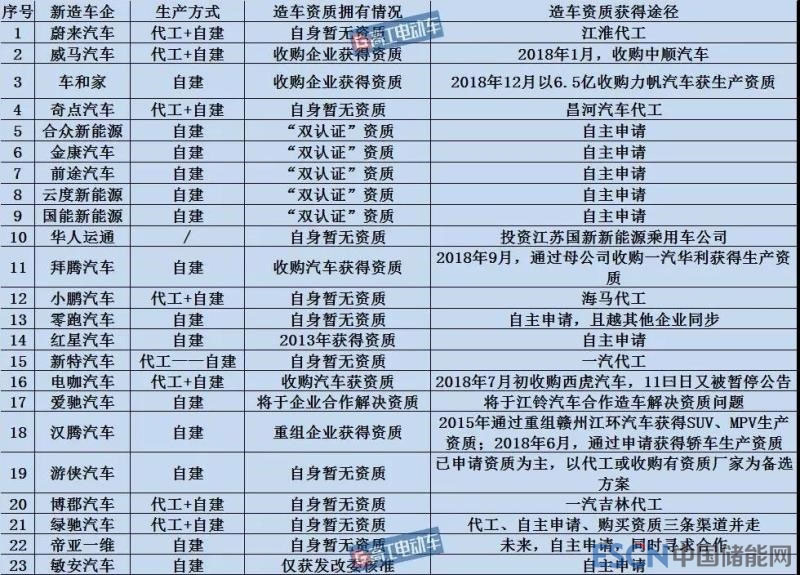 在政策出臺的時間分水嶺,高工電動車近日對23家新勢力企業(yè)的生產(chǎn)模式、資質(zhì)狀況以及獲取資質(zhì)的途徑這三方面對比(下圖)。發(fā)現(xiàn),近三分之一新勢力企業(yè)有選擇代工模式。但僅有“代工”一種模式的新造車勢力寥寥,更多企業(yè)的現(xiàn)有模式是“代工+自建工廠”兩條腿走路。