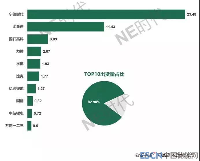 2018年國內(nèi)動(dòng)力電池企業(yè)出貨量TOP 10