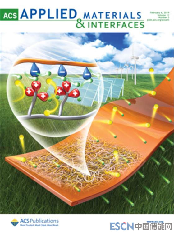 以上相關(guān)成果以“A Novel Triple Tertiary Amine Polymer Based Hydrogen Bond Network Inducing Highly Efficient Proton Conducting Channels of Amphoteric Membrane for High-Performance Vanadium Redox Flow Battery”為題,以封面論文的形式發(fā)表在ACS Appl. Mater. Interfaces, 2019, 11, 5003-5014上,并被該刊選為封面論文。