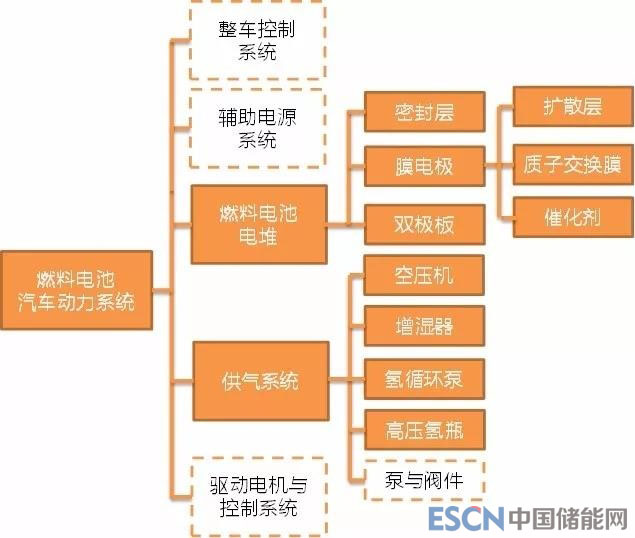 除電堆外,車用燃料電池系統(tǒng)中還需裝備空壓機(jī)、輔助電源系統(tǒng)(鋰電或鉛酸電池)、儲(chǔ)氫瓶、氫氣循環(huán)泵及電機(jī)驅(qū)動(dòng)與控制系統(tǒng)等。