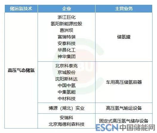 表為國內(nèi)采用高壓儲氫路線的部分相關(guān)企業(yè)