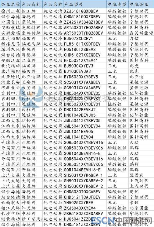 本批次公告新能源專用車共有40款,其中底盤產品有7款,專用車有33款,包括垃圾車、清洗車、冷藏車、路面養(yǎng)護車、牽引汽車、洗掃車、運輸車等。