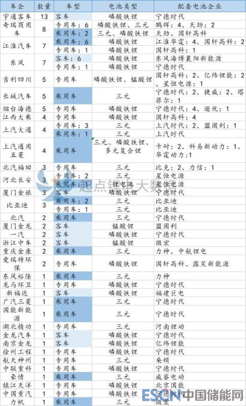 共有28家電池企業(yè)提供配套,包括寧德時代、國軒高科、東風海博襄陽新能源、星恒電源/鵬輝/江淮華霆、比亞迪/億緯鋰能/盟固利/微宏/天勁/上汽時代等。