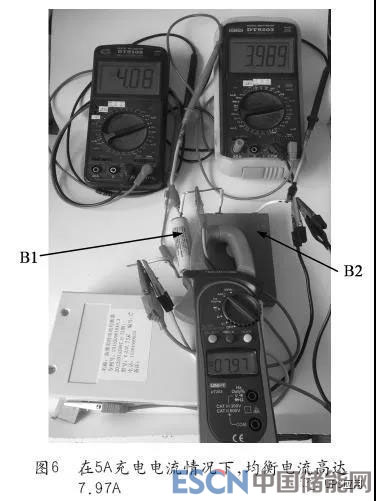 均衡充電期間,兩塊電池的電壓上升速度也基本相同,最大電壓差只有0.11V左右,B1電池的最高電壓也只有4.23V左右,始終處于安全電壓以內(nèi),均衡器樣機(jī)在連續(xù)大電流均衡的情況下只有微量的溫升,這就是樣機(jī)采用ABS塑料機(jī)殼的原因。