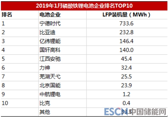 從1月最新的裝機量來看,2019年1月我國新能源汽車動力電池裝機總電量約4.98GWh,同比增長281%。其中,磷酸鐵鋰電池裝機電量約1.42GWh,同比增長177%。