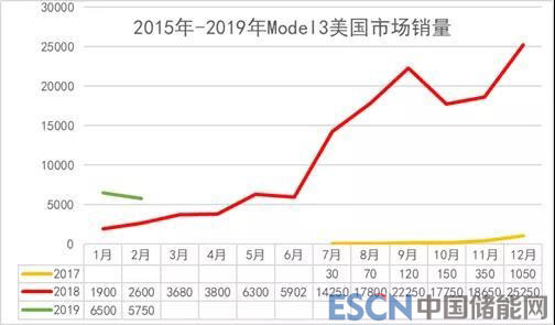 2019年的1月和2月的特斯拉MODEL3的銷量出現(xiàn)下滑,這是特斯拉銷量中較少出現(xiàn)的下滑,原來認(rèn)為退坡后的銷量會逐步回升,看來尙不樂觀。同時也看出退坡效應(yīng)在美國和中國都一樣。