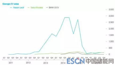 在實(shí)施稅收減免政策期間佐治亞州的電動車市場的狀況體現(xiàn)的相對明顯。佐治亞州的電動車銷售取得了巨大成功,其自稱是繼加利福尼亞州之后的美國第二大電動車銷售市場。2014年,該州的電動車銷量占美國所有電動車銷量的17%。驅(qū)動該數(shù)字的因素不僅僅是消費(fèi)者強(qiáng)烈的環(huán)保意識,也是該州為零排放汽車提供的5000美元稅收減免,此外還有7500美元的美國聯(lián)邦稅收減免。從銷量下降的數(shù)量上看,日產(chǎn)聆風(fēng)受到的影響最大。獎勵也適用于租賃,這使日產(chǎn)每出租一輛聆風(fēng)電動車每月就能獲得132美元的收入。當(dāng)時,日產(chǎn)在佐治亞州交付的聆風(fēng)車型中,有超過80%用于租賃。