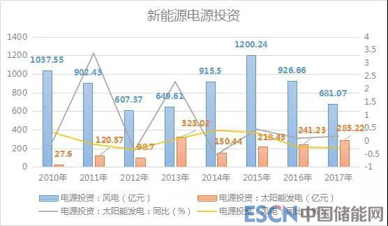 通過新能源的發(fā)電量、裝機容量和投資情況圖,可以對近些年我國的風電和光伏有一個大致的了解,我國的風電和光伏近些年的發(fā)展均保持一個較快的速度,風電每年的增長均保持在20%以上,光伏在2018年的增長也高達50.8%。但自2015年以來風電的投資有所下降,但光伏還是保持著不斷增加投資的趨勢。