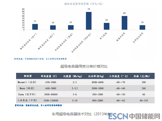 超級電容器在歐洲、美國、日本等發(fā)達(dá)國家起步較早,技術(shù)相對成熟,目前國內(nèi)出現(xiàn)了上海奧威、錦州富辰、北京合眾匯能等企業(yè),雖然整體水平與國外存在差距,但部分企業(yè)技術(shù)領(lǐng)先,如上海奧威公司,產(chǎn)品性能與國際先進(jìn)水平逐步縮小。其中,國產(chǎn)電容炭的性能指標(biāo)和穩(wěn)定性已經(jīng)可與進(jìn)口炭媲美,但是Maxwell的干電極技術(shù)壁壘尚未突破。