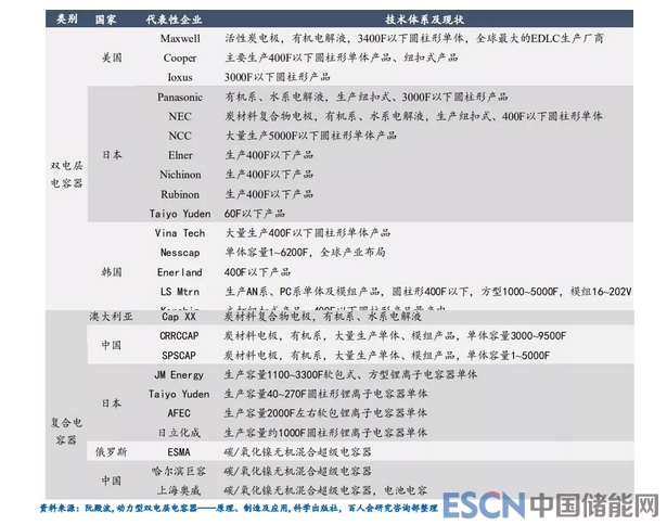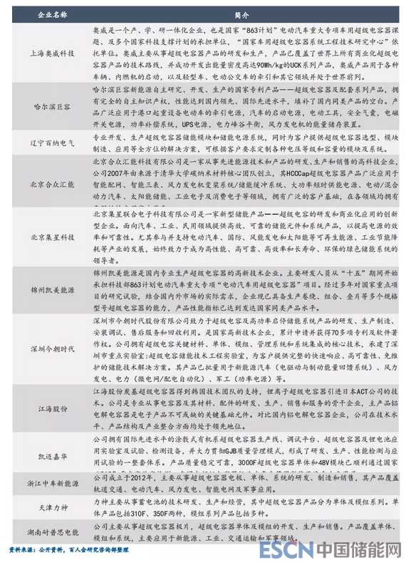 中國主要超級電容器生產(chǎn)企業(yè)