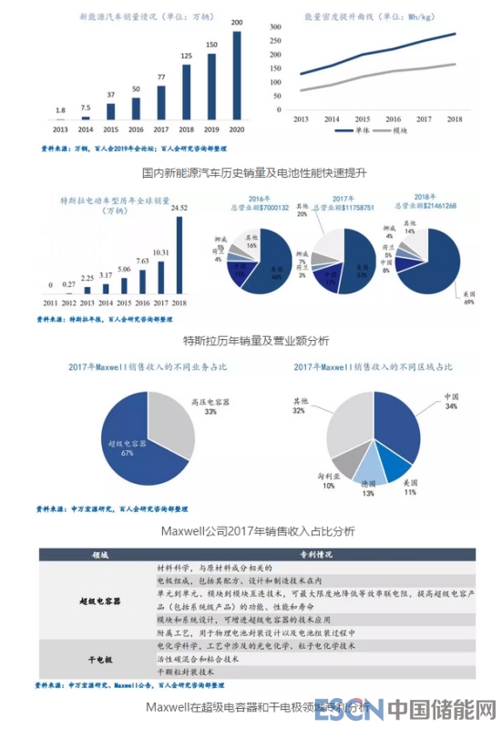 特斯拉收購Maxwell事件,有助于其新動力電池研發(fā)及混合儲能技術(shù)的提升。特斯拉和Maxwell分別是電動汽車和超級電容器行業(yè)的龍頭企業(yè),本次收購?fù)瓿珊?,有助于兩家公司業(yè)務(wù)相互增強(qiáng),同時為超級電容器在車用儲能中的應(yīng)用創(chuàng)造了新一輪熱潮,一方面,特斯拉可以吸收Maxwell的超級電容和干電極技術(shù),實現(xiàn)超級電容+鋰離子電池內(nèi)部融合的新動力電池技術(shù)路線,提升電池壽命和能量密度,降低生產(chǎn)成本。另一方面,功率型+能量型混合儲能技術(shù)也是其未來儲能產(chǎn)業(yè)可能用到的技術(shù)之一。同時,Maxwell在中國堅實的業(yè)務(wù)基礎(chǔ),將為特斯拉中國建廠帶來的供應(yīng)鏈合作提供一定程度的支持。