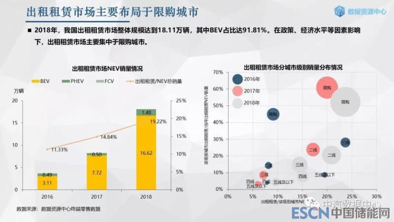 出租租賃市場(chǎng)2018年整體規(guī)模達(dá)到18.11萬(wàn)輛,同比增長(zhǎng)120%。區(qū)別于個(gè)人新能源市場(chǎng),出租租賃市場(chǎng)主要以BEV為主,占比高達(dá)92%,其中A00級(jí)轎車多應(yīng)用于分時(shí)租賃,A級(jí)轎車、MPV多用于出租車和網(wǎng)約車。受政策、經(jīng)濟(jì)水平、使用場(chǎng)景等因素影響,出租租賃市場(chǎng)主要集中于一線限購(gòu)城市。
