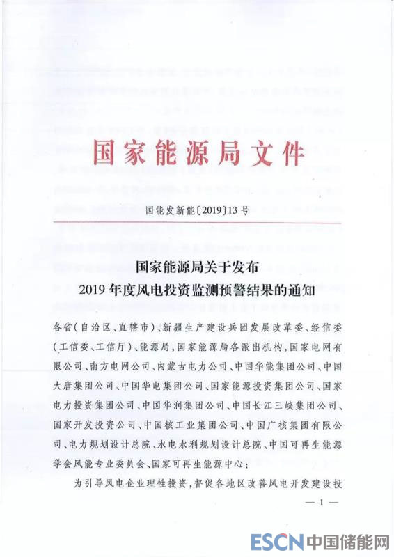 關(guān)于發(fā)布2019年度風(fēng)電投資監(jiān)測(cè)預(yù)警結(jié)果的通知
