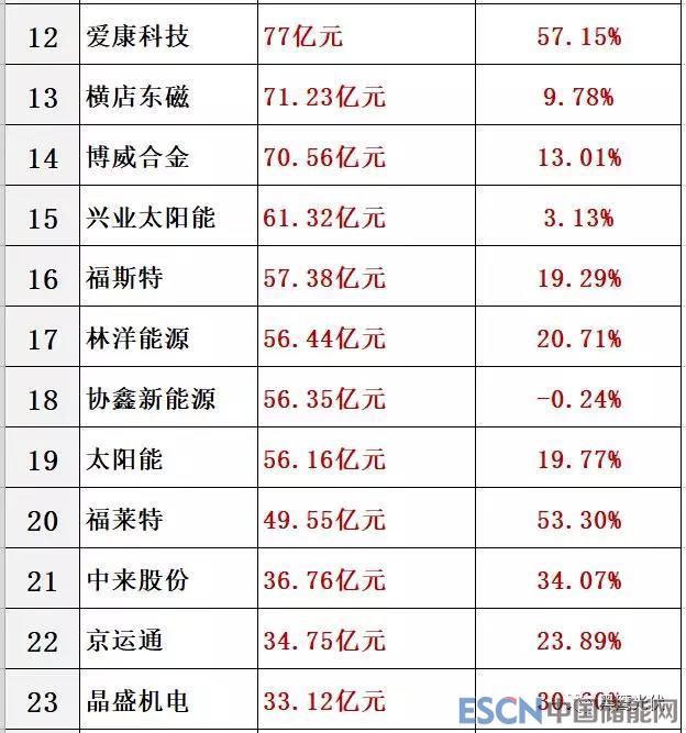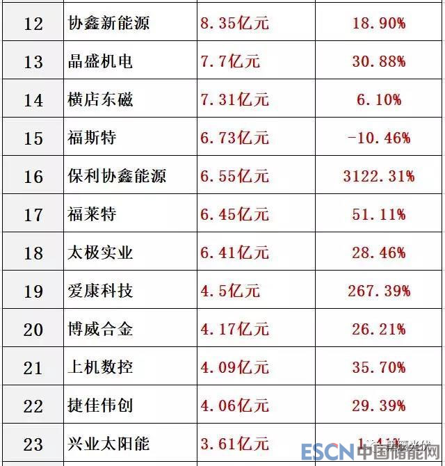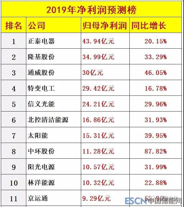 其中10家公司凈利潤(rùn)預(yù)計(jì)在10億元以上。榜單前三名為正泰電器、隆基股份和通威股份,預(yù)計(jì)分別為43.94億元,34.99億元和30億元;而預(yù)測(cè)的凈利潤(rùn)增幅前三名為保利協(xié)鑫能源(3122.31%)、岱勒新材(343.58%)和愛(ài)康科技(267.39%)。