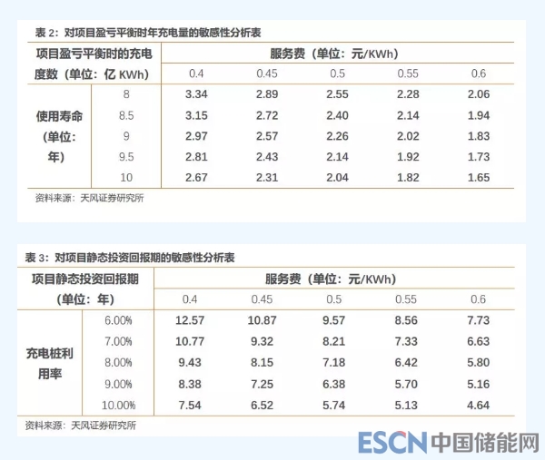 3)充電樁使用壽命8-10年對應的年充電樁建設投入為0.86-1.07億元,同時服務費0.4-0.6元/KWh,對應項目盈虧平衡時的年充電量為1.65-3.34億KWh。