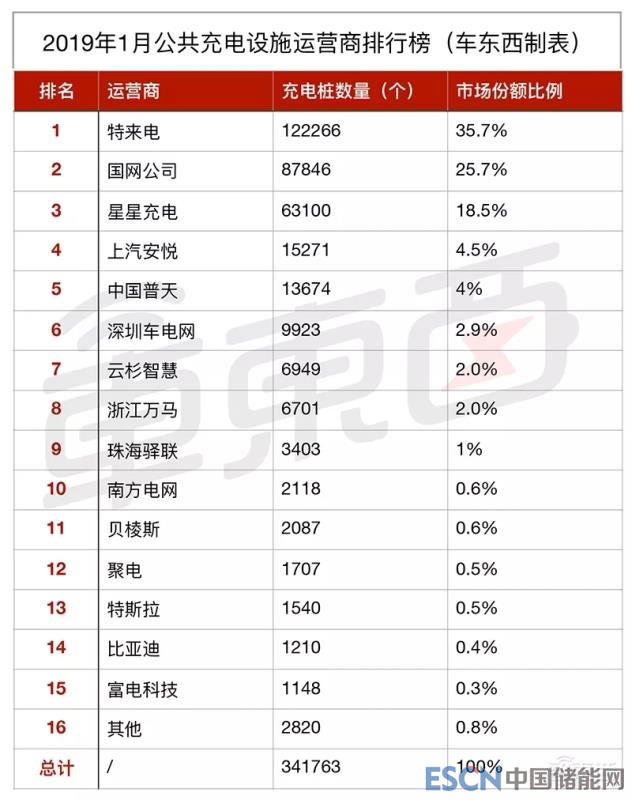 ▲2019年1月公共充電設(shè)施運(yùn)營(yíng)商排行榜