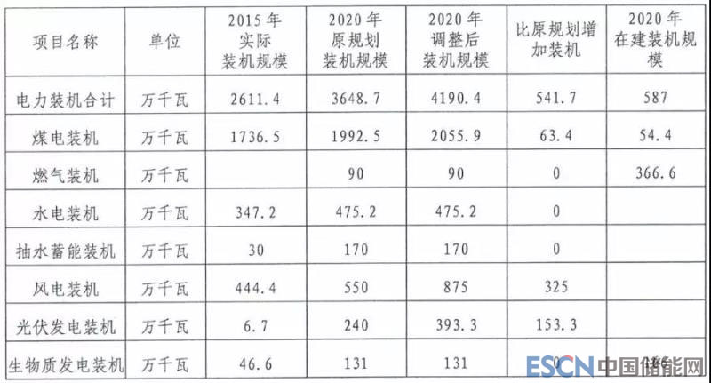 下圖為吉林省“十三五”電力裝機(jī)調(diào)整表