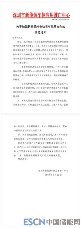 3月17日,深圳市新能源車輛應用推廣中心發(fā)布一則《關于加強新能源純電動貨車運營安全的緊急通知》(以下簡稱“通知”),“通知”表示,近期深圳市發(fā)生了多起新能源純電動貨車充電和運營過程中的電池熱失控事故,為保障人民群眾生命和財產安全,預防和減少此類事故發(fā)生,深圳市新能源車輛應用推廣中心對車輛生產企業(yè)和在深圳從事車輛運營、充電樁運營的企業(yè)提出以下建議: