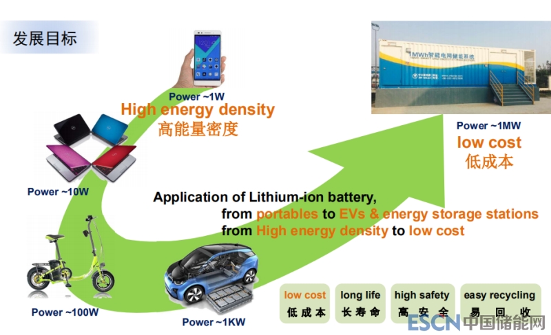 因此我們說儲(chǔ)能電池的發(fā)展,已經(jīng)從當(dāng)初對(duì)消費(fèi)類電池的高能量密度的首要要求,逐步轉(zhuǎn)變?yōu)閷?duì)低成本的核心要求。電池在手機(jī)中的使用是剛需,手機(jī)離不開電池,因此電池便宜也好,貴也好,必須要用電池。但是,儲(chǔ)能電池如果太貴的話電力系統(tǒng)可以不用,甚至可以用非儲(chǔ)能的手段解決一些儲(chǔ)能面臨的問題。所以“低成本”成為我們儲(chǔ)能電池發(fā)展的首要目標(biāo)。