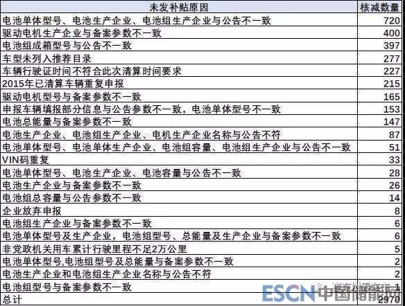 目前看影響補貼主要因素是產(chǎn)品一致性問題。電池單體型號、電池生產(chǎn)企業(yè)、電池組生產(chǎn)企業(yè)與公告不一致是主要的問題,單項的和組合的電池問題都比較多。
