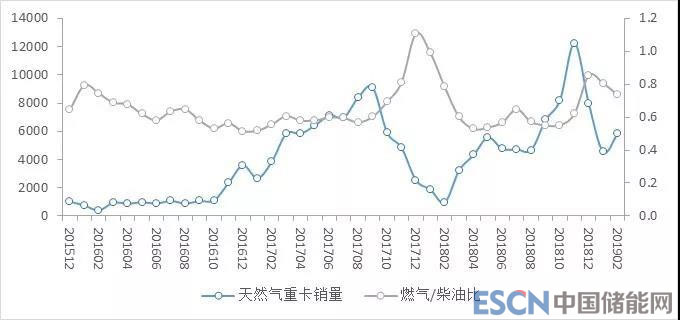 天然氣重卡銷量、天然氣價(jià)格/柴油價(jià)格走勢(shì)