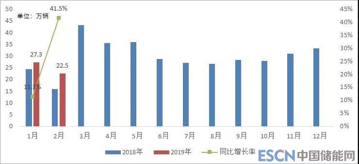 2019年1-2月新能源商用車銷售1.9萬(wàn)輛,由于補(bǔ)貼退坡政策尚未發(fā)布,18年底未出現(xiàn)16、17年的明顯銷量透支現(xiàn)象,因此2019年1-2月份銷量相比18年同期受透支影響的低銷量同比增長(zhǎng)76.5%。