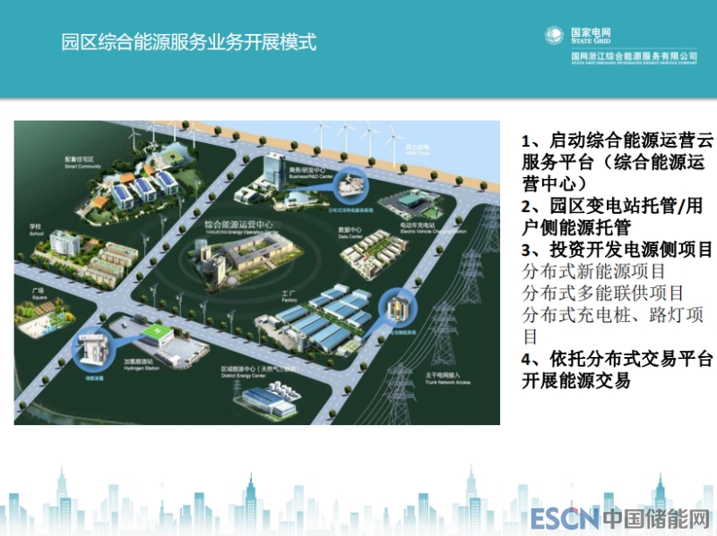 在園區(qū)綜合能源服務(wù)里面,第一要有云服務(wù)平(綜合能源運(yùn)營中心)。第二個做用戶能源托管項目,第三個投資清潔能源開發(fā)項目,第四延伸服務(wù)或者輔助服務(wù)的項目,打包交易的平臺,或者開展一些交易。