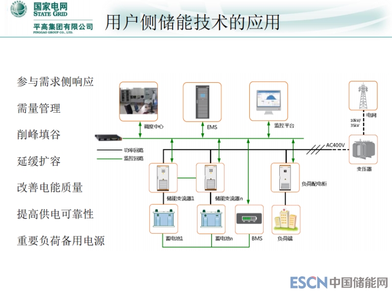 用戶側(cè)的儲(chǔ)能技術(shù)應(yīng)用,主要就是削峰填谷,對(duì)接企業(yè)來說,可能說超容,延緩擴(kuò)容,改善質(zhì)量。儲(chǔ)能對(duì)電網(wǎng)公司經(jīng)營(yíng)的影響,電源側(cè),儲(chǔ)能對(duì)公司經(jīng)營(yíng)沒有直接影響,主要在發(fā)電企業(yè)和儲(chǔ)能運(yùn)營(yíng)商之間平衡,新能源場(chǎng)站投資建設(shè)儲(chǔ)能的目的是增加發(fā)電量收益,減少考核費(fèi)用。常規(guī)發(fā)電企業(yè)配置儲(chǔ)能目的是增加輔助服務(wù)的收益,而輔助服務(wù)費(fèi)用僅在發(fā)電企業(yè)之間實(shí)現(xiàn)平衡,收益來源均與電網(wǎng)企業(yè)沒有直接關(guān)系。