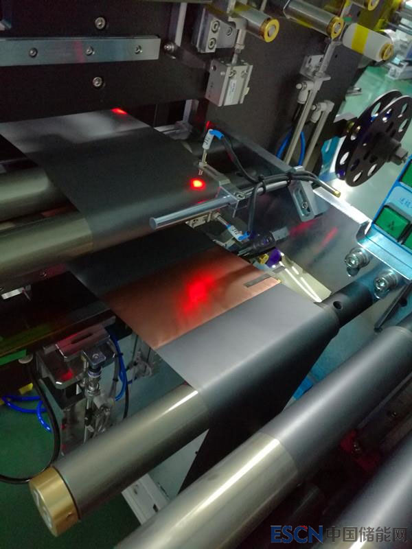 1.1 設(shè)備原理:電池制片機(jī)是用于生產(chǎn)正極極片或負(fù)極極片的設(shè)備, 用于生產(chǎn)鋰電池正極極片(鋁質(zhì))或負(fù)極極片(銅質(zhì))。一種極性需要一臺(tái)設(shè)備,一般是正負(fù)極兩臺(tái)設(shè)備在不同車間同時(shí)加工。將極片、極耳料卷分別安裝在放卷軸上,實(shí)現(xiàn)自動(dòng)放卷、自動(dòng)糾偏、自動(dòng)焊接極耳、自動(dòng)貼膠、極耳包膠,切斷或收卷的功能。