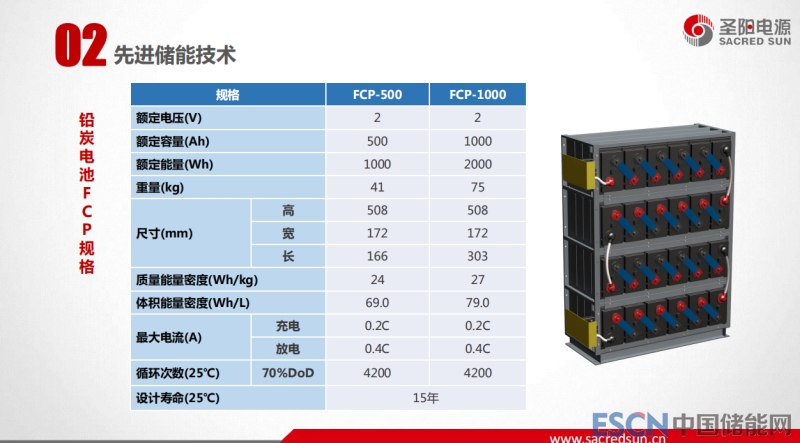 第二部分儲能技術(shù)。不得不說的就是電池技術(shù),我從兩個(gè)方面說,一個(gè)從鉛碳電池,一個(gè)就是鋰電池,尤其我們從2018年以后國內(nèi)的鋰電池裝機(jī)容量比例越來越高,這也是我們不可回避需要去推進(jìn)的一項(xiàng)工作。我們的鉛碳電池現(xiàn)在有大容量的鉛碳,單體容量一度電到兩度電,兩伏500,兩伏一千,小的就是12V的貨運(yùn)系統(tǒng),現(xiàn)在裝機(jī)量比較大的還是大容量的單體。這個(gè)產(chǎn)品是我們從2013年開始和日本合作推出的產(chǎn)品,專門面向大規(guī)模儲能的產(chǎn)品,循環(huán)壽命達(dá)到4200次,這是循環(huán)曲線。